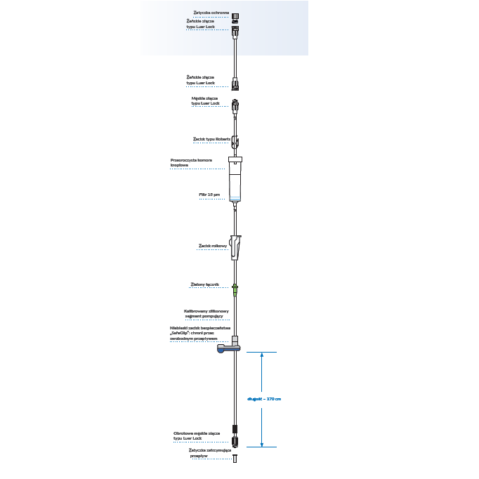 - Możliwe stosowanie z workami wyposażonymi w złącze typu Luer Lock