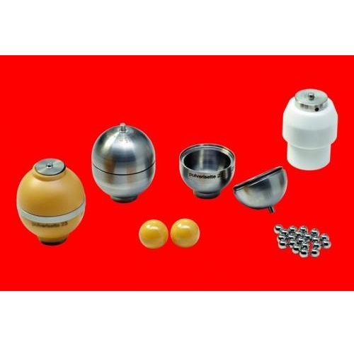 Dostępne naczynia i kule mielące wykonane z tlenku cyrkonu oraz kule mielące o śred. 15 mm (patrz kule mielące do planetarnych młynów kulowych PULVERISETTE 6/7 premium line).