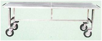 Wózek do transportu zwłok wykonany ze stali nierdzewnej.