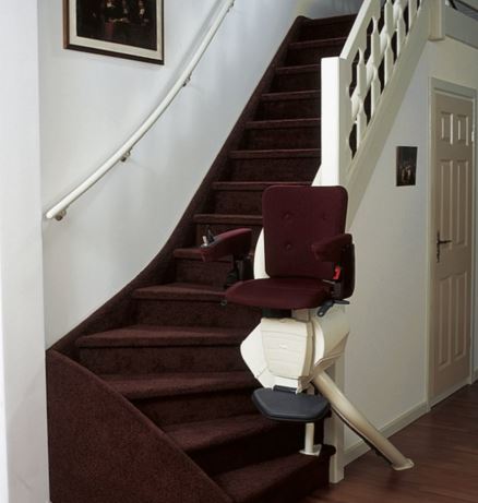 Krzesełko schodowe SLE jest przeznaczone do prostych i krętych schodów wewnątrz budynków.