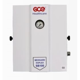 Rozdzielacz GCE Medical Duplex SB100 służy jako zapasowe źródło gazu, aktywując się, gdy nominalne ciśnienie w układzie zasilania spadnie poniżej 7 barów. Aby uzyskać optymalną wydajność, należy sparować Duplex SB100 z jednostką Duplex PNP100 i systemem alarmowym, zapewniając pełną zgodność ze standardowymi alarmami, w tym alarmami gazowymi. Zaleca się stosowanie stabilizatora jako drugiego stopnia. Alarm gazowy zapewnia zarówno wizualne, jak i dźwiękowe wskazania w celu zwiększenia bezpieczeństwa i monitorowania.