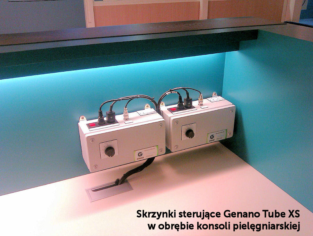 - Model Genano Tube XS jest SZCZEGÓLNIE POLECANY do użytkowania na Izbach Przyjęć oraz w obrębie całego obszaru SOR, stosowany w korytarzach i stanowiskach triażu, pokojach obserwacyjnych i zabiegowych, izolatkach oraz w pomieszczeniu wstępnej dekontaminacji;