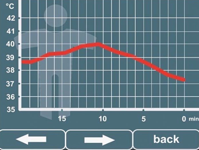 Badanie temperatury ciepła - nieprzerwany pomiar temperatury ciała przy zastosowaniu MDT 400, co pozwala zebrać dane, które później można dołączyć do dokumentacji medycznej pacjenta.