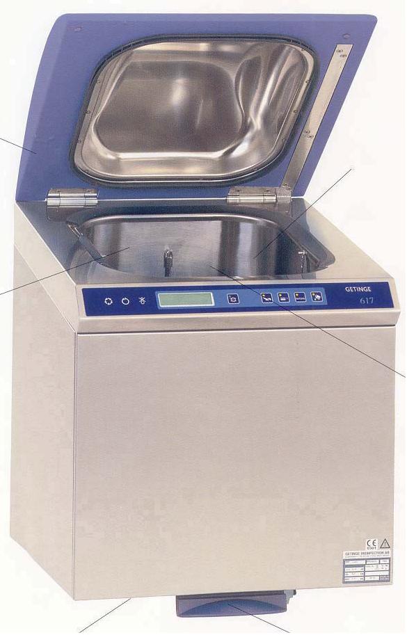 Getinge 600 to seria modeli. Dane szczegółowe u producenta. W standardzie pedał naciskowy do otwierania i zamykania klapy.