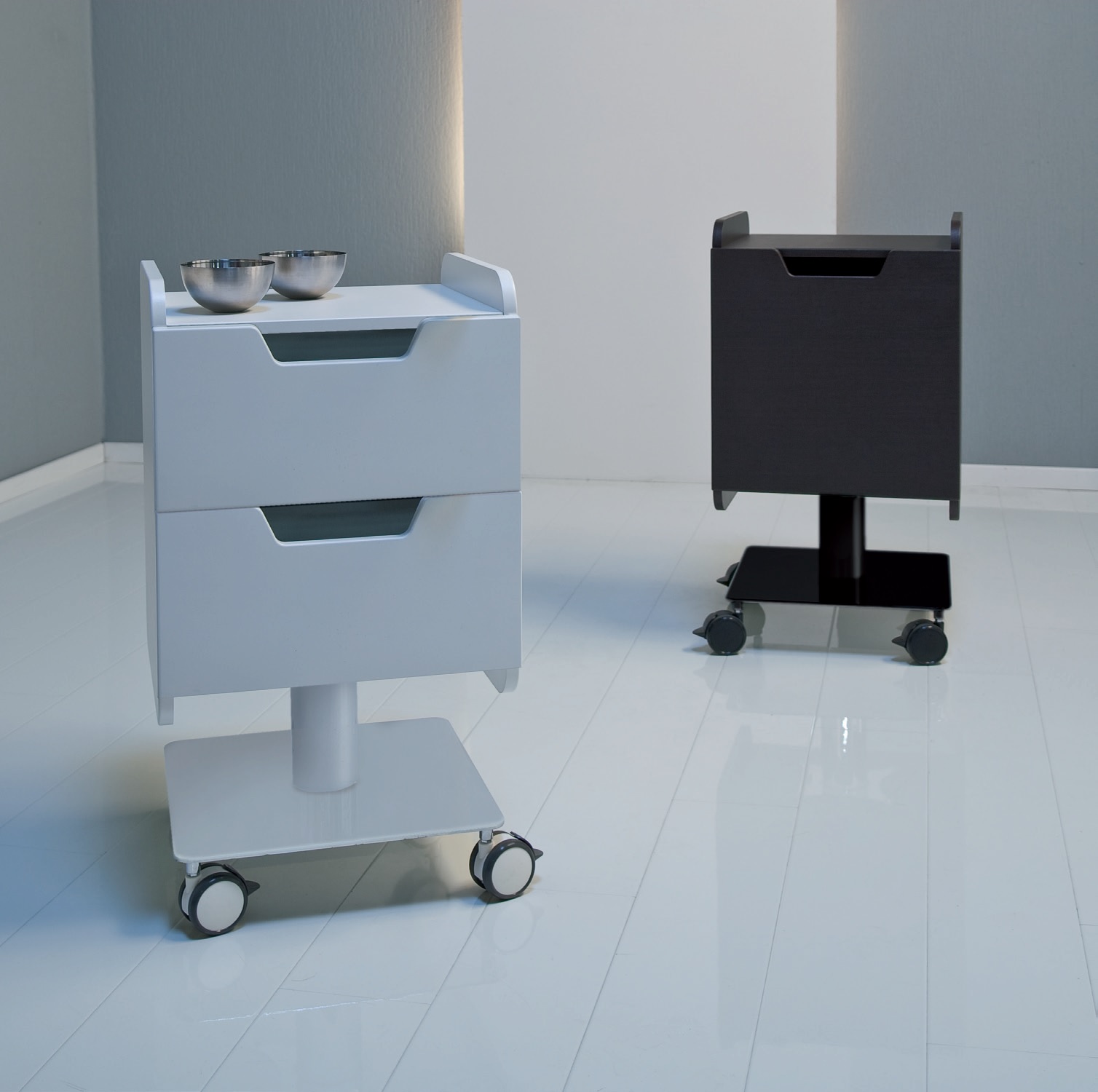 dwiema szufladami.