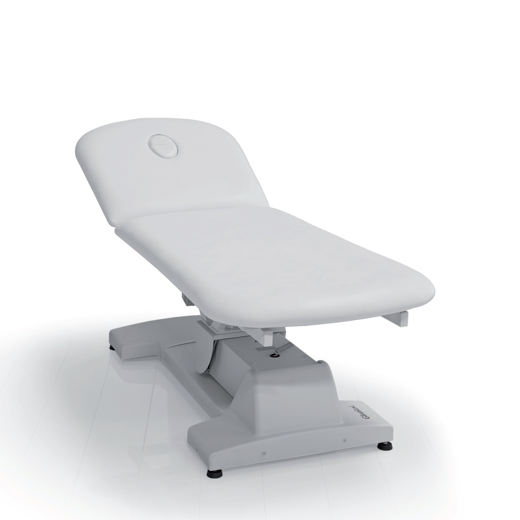 Stabilna leżanka do masażu z dzielonym na 2 części leżyskiem: zagłówek 67 cm, leżanka 127 cm. Regulacja zagłówka przy pomocy siłownika pneumatycznego do góry pod kątem + 75°. Leżanka MLL dostępna w wersji z jednym lub dwoma silnikami. Standardowo leżanka MLL wyposażona jest w pilot.