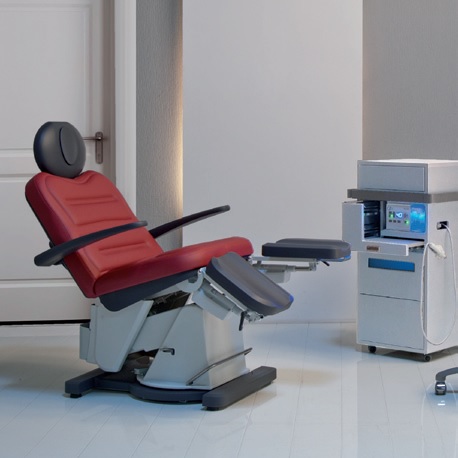 co ułatwia refleksoterapię. Maksymalna wysokość zabiegowa 95 cm umożliwia wykonanie masażu w pozycji poziomej, a wycięcie w zagłówku zapewnia komfort klientowi w pozycji na brzuchu. 9 pozycji zabiegowych można zaprogramować przy pomocy funkcji Memory. Fotel można sterować za pomocą różnych systemów, m.in. pilot z kablem, pilot bezprzewodowy