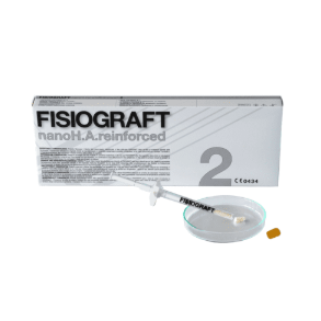 Fisiograft nano pełni rolę, utrzymywacza przestrzeni wykorzystywanego w procesach odbudowy tkanki kostnej. Nanohydroksyapatyt stosowany w FISIOGRAFCIE jest syntetyzowany z użyciem techniki opracowanej przez firmę Ghimas S.p.a do wytwarzania granulek o wymiarach od 70 do 100 nanometrów. Gotowa do użycia strzykawka zawierająca FISIOGRAFT wzmocniony nanohydroksyapatytem pozwala na łatwe nanoszenie produktu. Granulki pozostają w pozycji ułatwiającej przebieg zabiegów chirurgicznych.