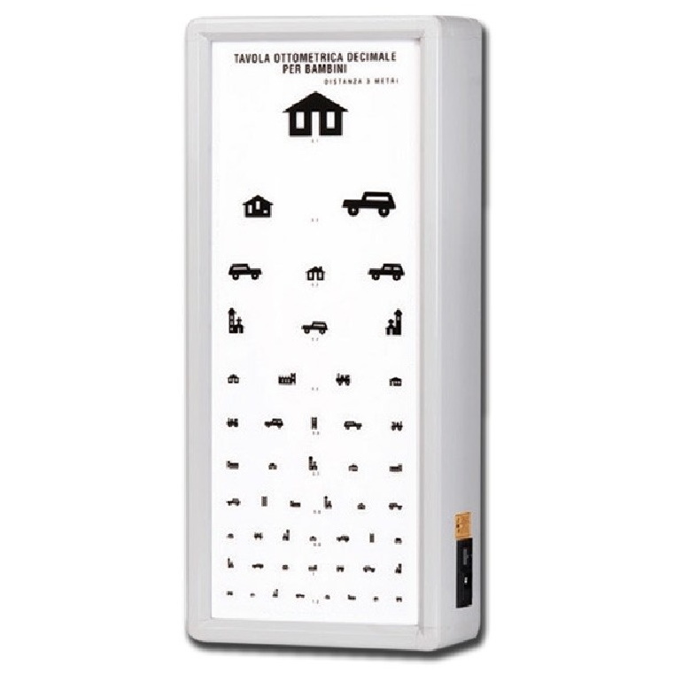 Podświetlana Tablica Okulistyczna z pilotem dla dorosłych i dzieci (Tablica Snellena). Tablice podświetlane optometryczne wykonane wedle wytycznych lekarzy. Płyta czołowa wytworzona została ze szkła akrylowego. Atest CE.