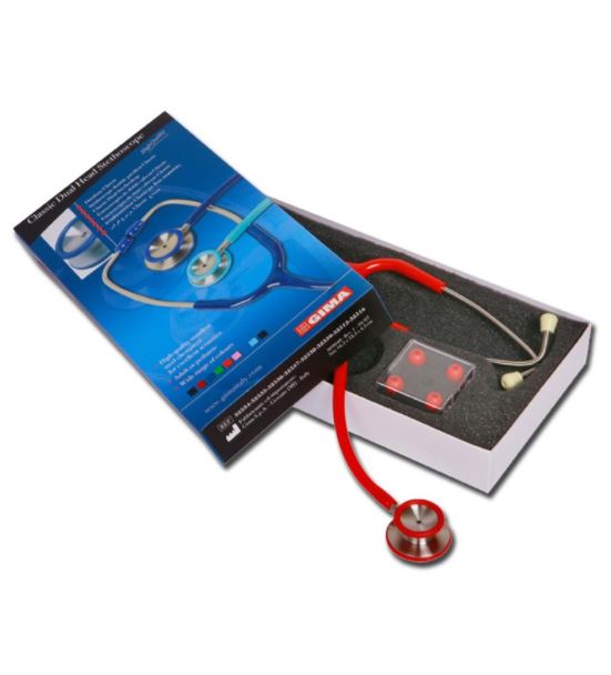 Wysokiej jakości stetoskop internistyczny z dwustronną głowicą ze stali nierdzewnej i giętką lirą ze stali nierdzewnej. Przewód akustyczny podwójny i wytrzymały wykonany z elegancko formowanych rur PVC dla zapewnienia niezrównanej wydajności akustycznej.