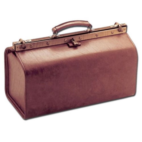 Duża torba na akcesoria medyczne oraz dokumenty. Wykonana ze sztucznej skóry - skaj, w kolorze koniaku. Torbę wyposażono w sztywne dno, wewnątrz kieszonka na suwak. Po obu stronach torby w jej wnętrznu znajdują się składane sprężyste uchwyty na narzędzia medyczne.
