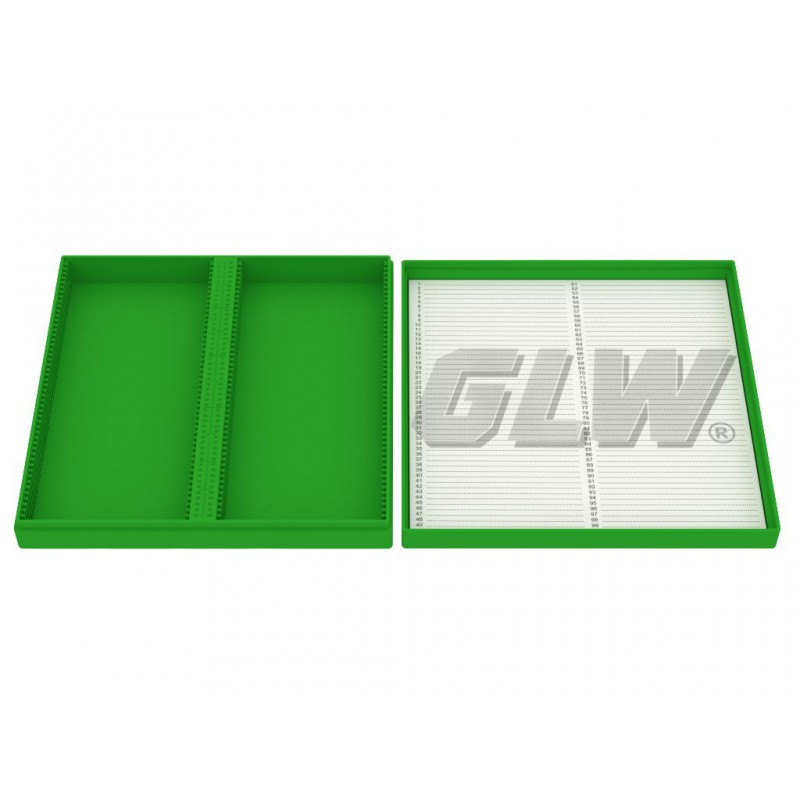 - Pudełko na szkiełka mikroskopowe z polistyrenu / do zamrażania do -80°C i wytrzymałe do +70°C