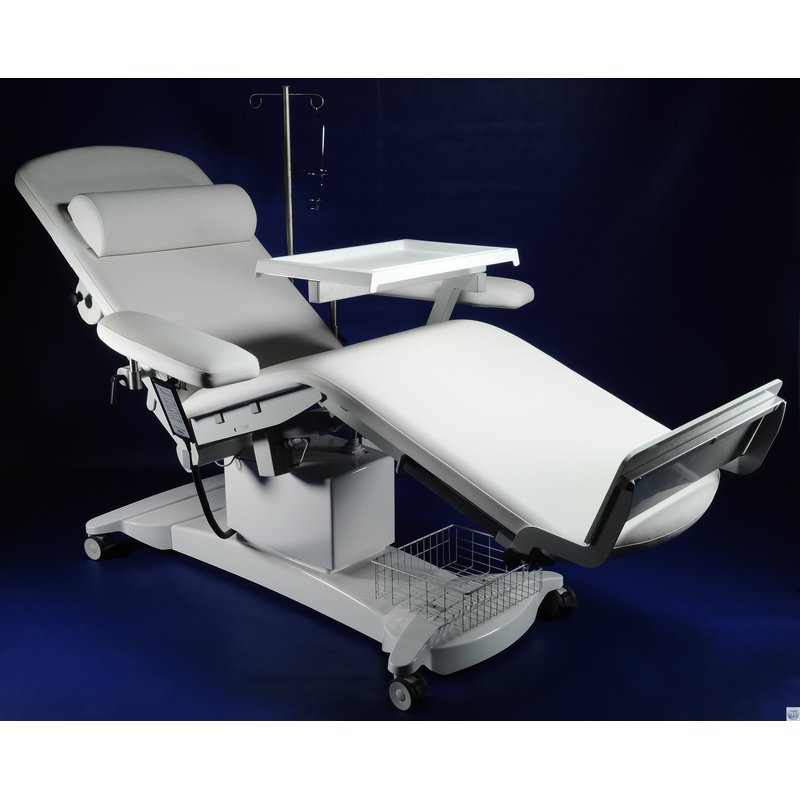• Fotel wyposażony w stojak płynow infuzyjnych z możliwością szybkiego przemieszczania stojaka z prawej na lewą stronę.