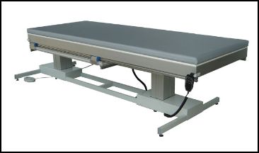 Stół GOLEM SKIA E posiada tzw. pływający blat. Powierzchnia robocza jedno segmentowa. Stół z możliwością przesuwu wzdłużnego i poprzecznego. Typ regulacji za pomocą siłowników elektromechanicznych. Regulacja wzdłużna i poprzeczna odbywa się za pomocą kablowego pilota ręcznego. Natomiast regulacja wysokości, za pomocą przewodowego nożnego pulpitu sterującego. Stół wyposażony w odejmowalny materac. Stół przystosowany do zastosowania ramienia C aparatu RTG.
