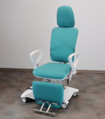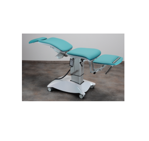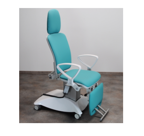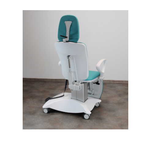 Czterosegmentowa powierzchnia robocza zapewnia komfort pacjenta podczas badania oraz zabiegów laryngologicznych. Fotel zajmuje mało miejsca w gabinecie i jest bardzo łatwy w przemieszczaniu. W standardzie rotacja 90o lewo/prawo, jezdna podstawa, podrączki pacjenta, wysuwana podpórka pod stopy pacjenta;