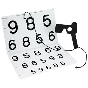 Tablica przeznaczona do badania dorosłych i dzieci z upośledzonym wzrokiem, w odległości jednego metra. Największe optotypy są w wielkości 50M, co odpowiada 1m / 50M = do 1/50. Najmniejsze optotypy są w wielkości 1M w rozmiarze odpowiadającym 1m / 1M = do 1/1. Zaprojektowany dzięki uprzejmości August Colenbrander, MD.