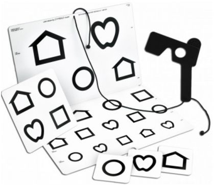 Tablica przeznaczona do badania dorosłych i dzieci z upośledzonym wzrokiem, w odległości jednego metra. Największe optotypy są w wielkości 50M, co odpowiada 1m / 50M = do 1/50. Najmniejsze optotypy są w wielkości 1M w rozmiarze odpowiadającym 1m / 1M = do 1/1. Zaprojektowany dzięki uprzejmości August Colenbrander, MD.