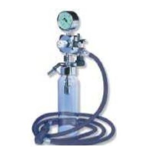 Regulator próżni wyposażony w zawór szybkiego otwarcia, wraz z zaworem igłowy, wakuometr, butelk na wydzieliny 0,25l (podłączenie od góry), wtyk próżniowy, model szynowy jest wyposażony w wąż 1,5 m i wtyk kątowy.