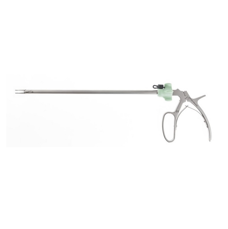 Narzędzia są dostępne w rozmiarze ML, odpowiednio dla niewchłanialnych klipsów LigaV® lub Vclip®, a ich stabilne prowadzenie zapewniają szczęki aktywowane przednią rękojeścią. Obrotowy trzon 360°, rotowany palcem wskazującym, umożliwia wygodną obsługę jednoręczną, natomiast kanał płuczący pozwala na szybkie i skuteczne czyszczenie instrumentu, redukując ryzyko zakażenia.
