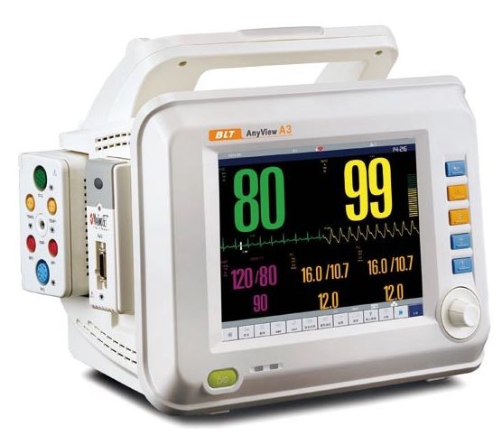 - Standardowa konfiguracja: EKG 3/5/12 odprowadzeń, respiracja, SpO2, NIBP, 2 kanały temperatury