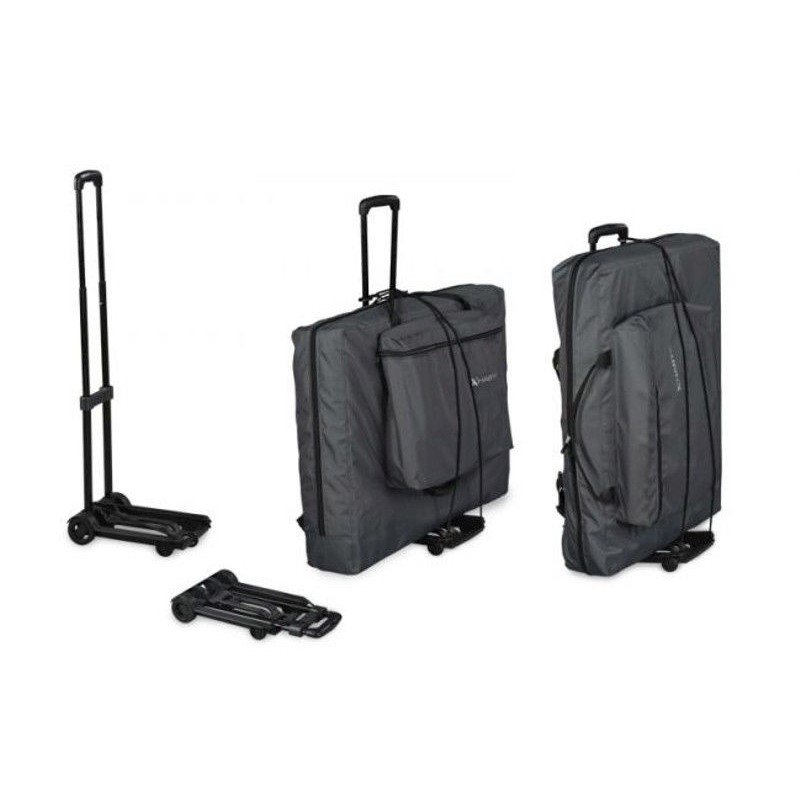 Składany wózek transportowy - Mobilny, lekki i praktyczny wózek do przewożenia składanych stołów do masażu. Dzięki teleskopowo składanej rączce, wózek przybiera wyjątkowo niewielkie rozmiary.