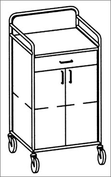 Wózek wielopoziomowy do czystej bielizny, zamknięty, 1 szuflada o wys. 126 mm, szafka z 1 półką (2 komory) wykonana z płyty meblowej pokrytej melaminą w kolorze jasnoszarym, drzwiczki otwierane do kąta 270°, szafka osadzona w ramie wykonanej z rurki stali nierdzewnej o średnicy 22 mm, solidnie spawanej, pozbawionej śrub i ostrych krawędzi, krawędzie zabezpieczone tworzywem, 4 kółka obrotowe o średnicy 125 mm, wymiary: 550 x 600 x 1090 mm (szer./ gł./ wys.)