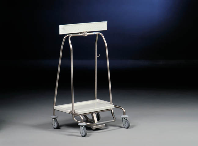 Zbieracz odpadów Clappy, z gumowym kołnierzem o szer. 550 mm, na worki o pojemności ok. 70 l, z dolną półką wykonaną z tworzywa ABS zabezpieczającą podłogi przed zabrudzeniem, z mechanizmem pedału i automatycznym hamulcem (naciśnięcie pedału powoduje zatrzymanie zbieracza), z dodatkową blokadą utrzymującą kołnierz w pozycji otwartej, stal nierdzewna, rama solidnie spawana, pozbawiona śrub i ostrych krawędzi, 4 kółka obrotowe o średnicy 75 mm (dostępne również inne kółka), 4 zderzaki w formie krążka, wymiary: 585 x 490 x 975 mm (szer. / gł. / wys.)