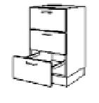 Element systemu haliONE, pozwalającego na konfigurację zestawu mebli według potrzeb klienta. Szafka dolna z szufladami z pełnym wysuwem do zawieszenia modułów i koszy modułowych 400 x 600 x 200 mm (ISO).