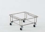Pojedynczy stelaż jezdny bez pojemnika. Stelaż wykonany jest z prętu ze STALI NIERDZEWNEJ, wyposażony w 4 kółka z tworzywa, o średnicy 50 mm w ocynkowanej, pokrytej warstwą chromu oprawie.
