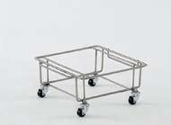 Potrójny stelaż jezdny bez pojemników. Stelaż wykonany jest z prętu ze STALI NIERDZEWNEJ, wyposażony w 4 kółka z tworzywa, o średnicy 50 mm w ocynkowanej, pokrytej warstwą chromu oprawie.