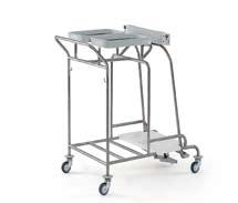 Model z zawiasem do pokrywy. Ten zbieracz uniwersalny stanowi połączenie zbieracza prania i zbieracza odpadów Clappy. Umożliwia zbieranie prania i odpadów za pomocą jednego wózka, łącząc w sobie zalety obu zbieraczy. Dane techniczne: konstrukcja ze STALI NIERDZEWNEJ solidnie spawana, Ř rurki 20 mm; wyposażone w stworzoną przez Hammerlit obręcz HR 2000 do mocowania worków; 4 kółka obrotowe z szarym termoplastycznym ogumieniem, w oprawie ocynkowanej i pokrytej warstwą chromu; 4 zderzaki w formie krążka, 2 haczyki stalowe.