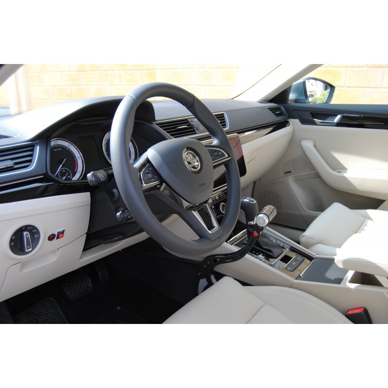 Elektroniczna dźwignia SPEED&BRAKE to kompleksowe rozwiązanie problemu prowadzenia auta przez osoby niepełnosprawne. W jednej dźwignie znajdują się funkcje pozwalające kierującemu sterować prędkością poprzez dozowanie gazu i hamowanie. Poniekąd jest to rozwinięcie dźwigni PUSH, hamowanie przebiega bowiem analogicznie. Przyspieszaniem zaś, kierujący steruje przy pomocy przycisku znajdującego się po lewej stronie dźwigni. Poprzez stopniowy nacisk kciuka na przycisk auto równomiernie zwiększa swoje przyspieszenie. Tak jak hamulec PUSH, SPEED&BRAKE E również jest wyposażony w przyciski sygnału dźwiękowego i blokady hamulca, które można zamontować po prawej lub lewej stronie dźwigni. Aby precyzyjniej sterować prędkością samochodu przy pierwszym użyciu, w trakcie parkowania lub wykonywania skomplikowanych manewrów, moc pojazdu można zmniejszyć o około 50% przy pomocy funkcji Park. Elektroniczna dźwignia SPEED&BRAKE to rozwiązanie uniwersalne, w momencie wymiany samochodu urządzenie można przenieść do nowo zakupionego pojazdu, a poprzedni przywrócić do stanu oryginalnego.