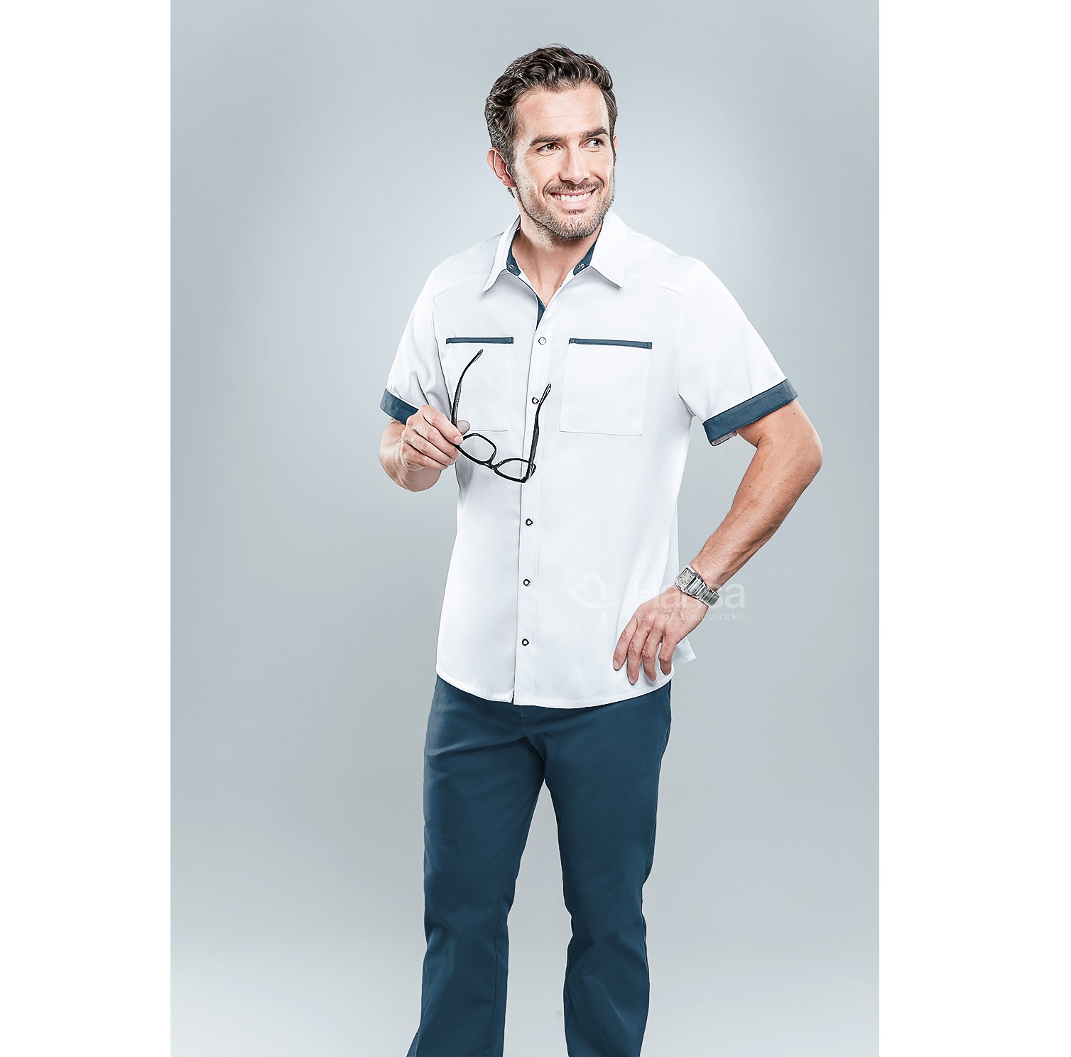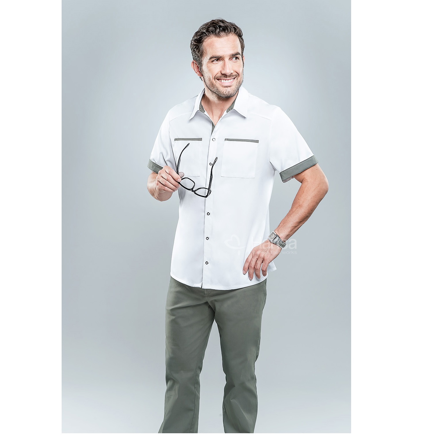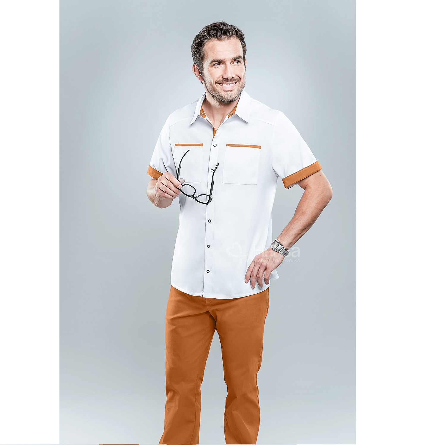 Tkaniny elanobawełniane tkane są diagonalne (2/1). Za wartość poliestru sprawia, że nie gniotą się tak, jak tka niny bawełniane, łatwo się prasują, charakteryzują się dobrą przewiewnością. Tkaniny, z których uszyto odzież, spełniają obowiązujące Polskie Nomy ustanowione przez Komitet Normalizacji Miar i Jakości, posiadają certyfikaty Eko-TEX. Do produkcji odzieży używamy dodatków najwyższej jakości: nici z certyfikatami jakości, guzików odpornych na topienie podczas prasowania i gotowania oraz nierdzewnych zatrzasków typu „Spring” bez dodatku niklu