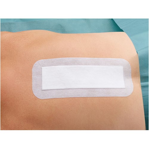 Samoprzylepny, 3-warstwowy opatrunek na rany i skaleczenia do skóry wrażliwej posiadający hydrofobową warstę kontaktową nieprzywierającą do rany.