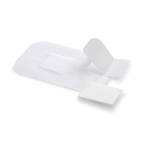 Samoprzylepny opatrunek do mocowania kaniul z wcięciem; miękka włóknina przepuszcza powietrze i parę wodną; zaokrąglone rogi zapobiegają uciążliwemu zwijaniu się włókniny; stanowi niezawodną ochronę przed zanieczyszczeniami dzięki obwodowo rozmieszczonej, szczelnie zamykającej opatrunek warstwie przylepnej; dodatkowo miejsce wkłucia jest zabezpieczone przy pomocy poduszeczki wyściełajacej, która chroni pacjenta przed uciskiem spowodowanym przez kaniulę;