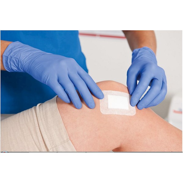 Samoprzylepny, 3-warstwowy opatrunek na rany i skaleczenia o wysokiej chłonności do skóry wrażliwej posiadający hydrofobową warstę kontaktową nieprzywierającą do rany.
