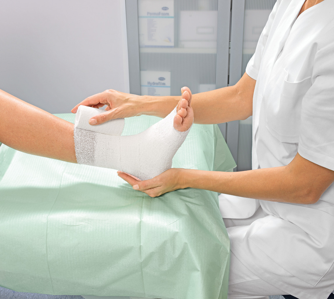 Do wywołania mocnego ucisku w przypadkach zapalenia żył głębokich i powierzchownych, w stanach zespołu pozakrzepowego, w owrzodzeniach podudzi, jeżeli nie występuje sączenie z rany.