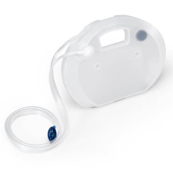 - Mały, 300 ml zbiornik o ergonomicznym kształcie szczególnie dobrze sprawadza się u pacjentów mobilnych.