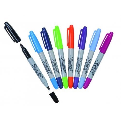 Zestaw zapasowych pisaków Sharpie®: czarny, zielony, granatowy, pomarańczowy, fioletowy, błękitny i seledynowy,