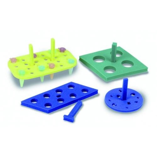 Wykonane z pianki polietylenowej. Idealne do termostatowania próbek w łaźniach wodnych i zlewkach. Wyposażone w uchwyty umożliwiające bezpieczne podnoszenie z powierzchni. Uchwyty można odłączyć.