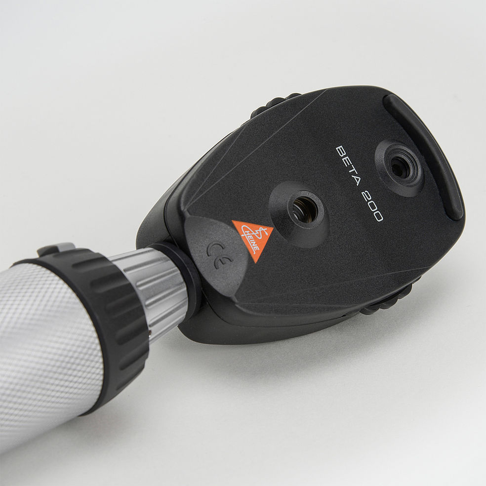 Oftalmoskop z wyjątkowym asferycznym systemem optycznym i wszystkimi właściwościami modelu BETA 200 LED, ale z oświetleniem żarówkowym XHL zamiast oświetlenia LED. Dodatkowo dostępna wersja BETA 200 M2 ze specjalnym zestawem przesłon.