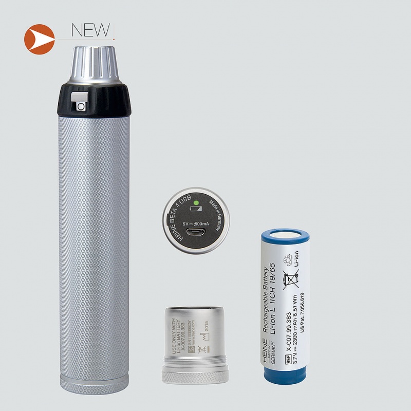 Najwyższy poziom bezpieczeństwa. Rękojeść HEINE BETA4 USB może być bez problemu ładowana przy użyciu każdej ładowarki USB lub innego źródła energii ze złączem USB. Rękojeść BETA4 USB jest wyposażona w unikatowy zintegrowany moduł izolacji galwanicznej, chroniący rękojeść i użytkownika przed skutkami stosowania niesprawnej ładowarki. Stanowi to niezawodne zabezpieczenie przed bezpośrednim przeniknięciem prądu sieciowego do rękojeści. Mimo to zalecamy stosowanie ładowarki sieciowej posiadającej aprobatę medyczną.