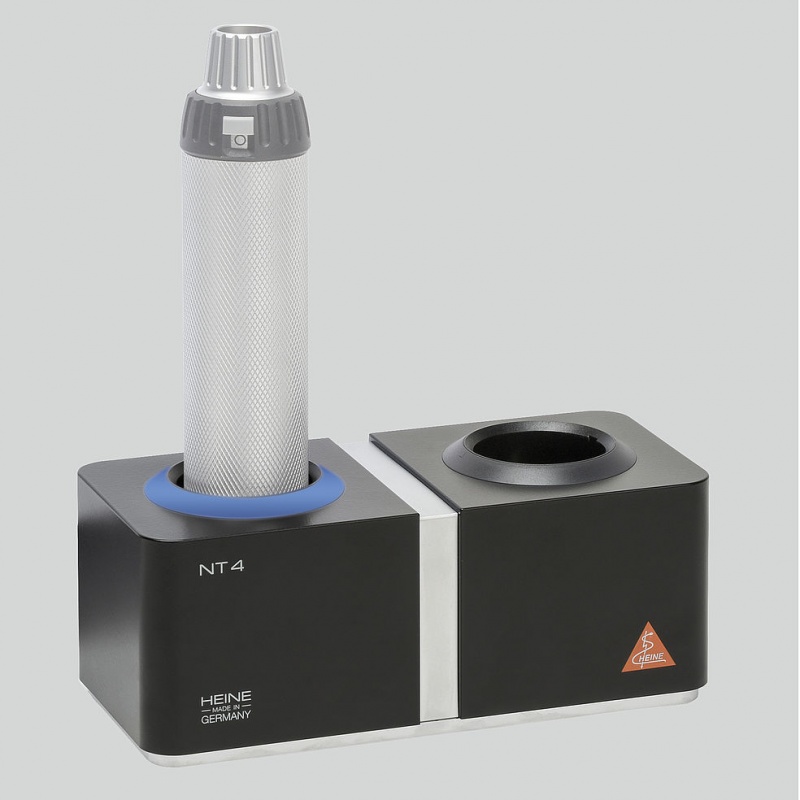 Funkcja "Ready-to-use". Rękojeść wyłączy się automatycznie po wstawieniu do gniazda ładowarki biurkowej NT4. Dzięki temu przypadkowe działanie staje się wykluczone. Zapobiega to przedwczesnemu zużyciu baterii i przepaleniu żarówki. Wyjęta z ładowarki rękojeść włączy się automatycznie z ostatnio wybranym poziomem jasności.