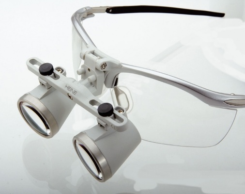 Łącznik kątowy HEINE umożliwia zmiane kąta pod którym lupa jest zamocowana do ramki. Uzyskanie odpowiedniego kąta widzenia, lub kąta odchylenia osi wzrokowych, jest bardzo ważne w zapobieganiu nadwyrężenia szyi i pleców spowodowanego nieprawidłową postawą podczas pracy.