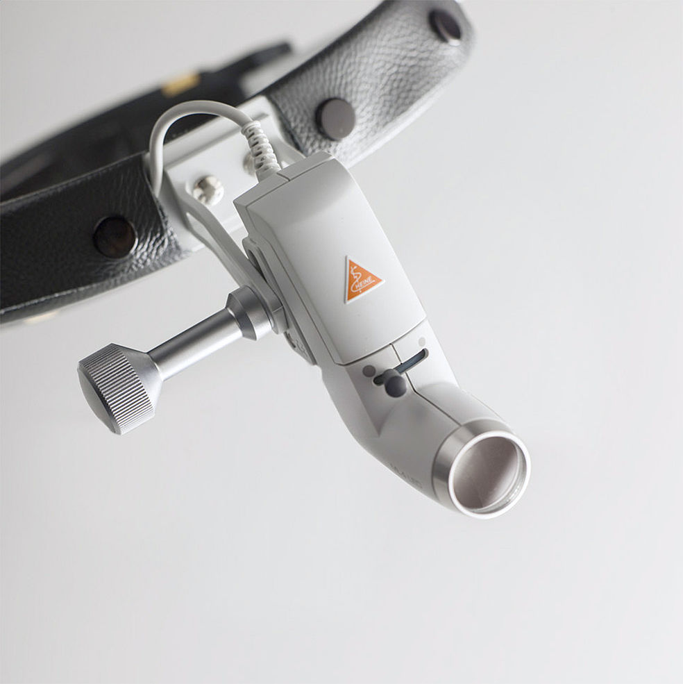 HEINE i-View – mocowanie lup: Zapewnia każdy kąt widzenia i umożliwia uniesienie optyki lupy niezależnie od ustawienia strumienia światła lampy czołowej ML4 LED HeadLight.