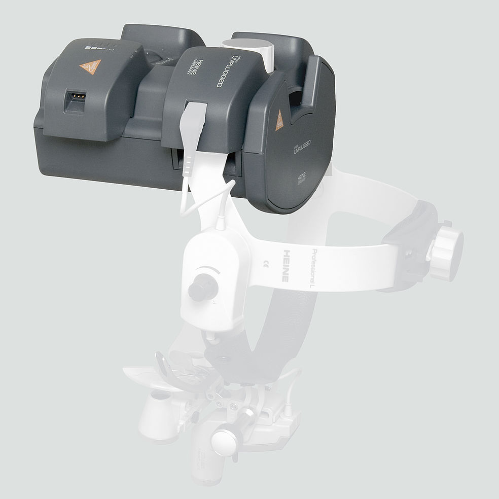 Nowoczesny system akumulatorowy do oftalmoskopu pośredniego dwuokularowego OMEGA 500 UNPLUGGED oraz lampy czołowej ML4 / 3SLED UNPLUGGED.