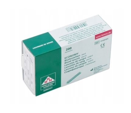 Sterylne nożyki / lacety hematologiczne do punktowego nakłuwania skóry w celu pobrania próbki krwi kapilarnej, cenionej, niemieckiej firmy Heinz Herenz.