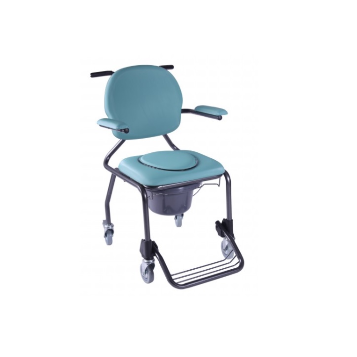 Fotel toaletowy posiada wyjątkowy design i wysoką jakość. Wykonany jest z solidnej metalowej ramy pokrytej proszkowo farbą epoksydową. Elementy tapicerskie są wodoodporne. Siedzisko jest umocowane do ramy za pomocą klipsów w celu zagwarantowania higieny. Fotel posiada uchylne podłokietniki dla ułatwienia transferu pacjenta, oraz komfortowe siedzisko.