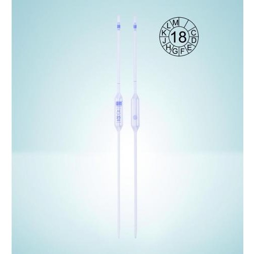 Wzorcowane na wylew (TD, Ex). Z oznaczeniem identyfikującym serię i datę produkcji. Certyfikat zgodności wg DIN 12600. Oznaczenia i napisy wykonane trwałą, niebieską, wysoce kontrastową emalią, zgodne z normą DIN EN ISO 648.