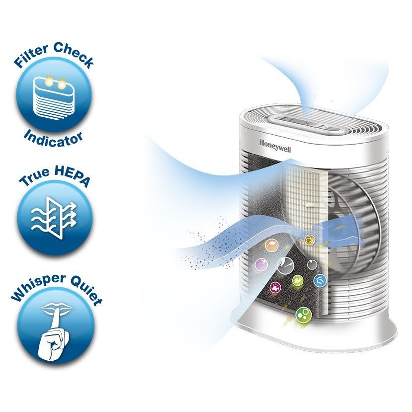 Honeywell HPA100WE4 Oczyszczacz powietrza z cyrkulacją i trybem turbo przeznaczony jest do małej wielkości pomieszczeń. To niewielki oczyszczacz, który jest wydajny i kompaktowy, dzięki czemu zmieści się niemal w każdym miejscu.